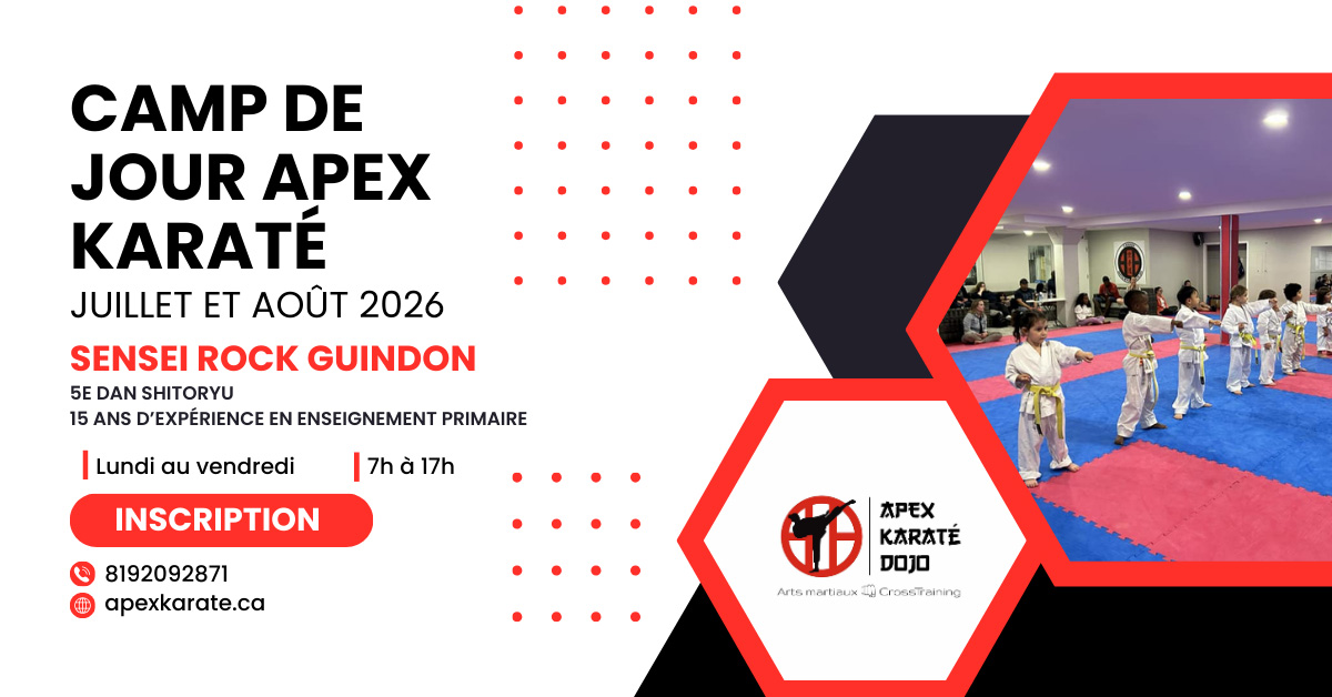 Les inscriptions pour notre Camp de jour APEX Karaté été 2026 sont maintenant ouvertes!